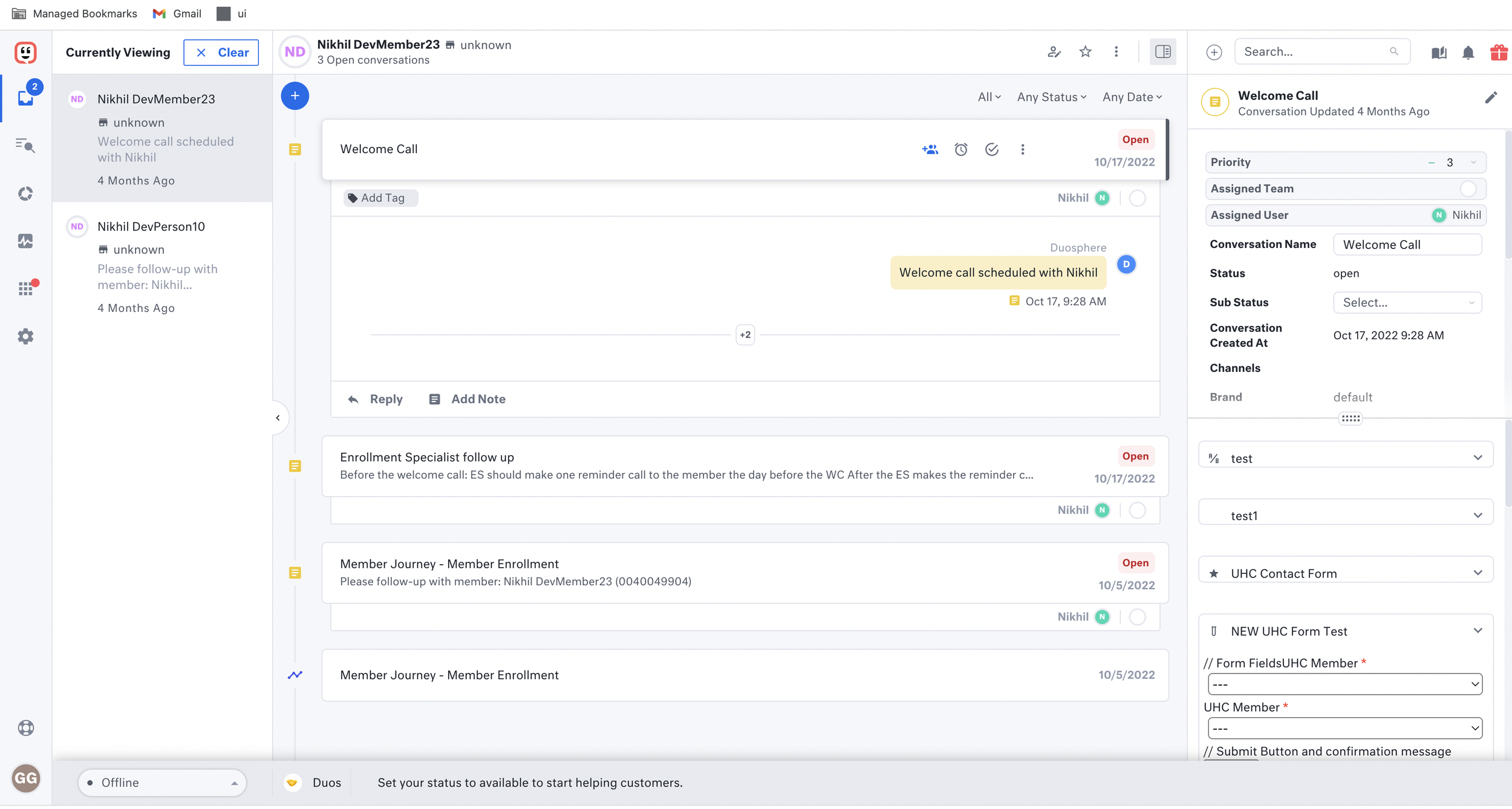 DUOS CRM, also known as the DUOS App, was a member relationship management platform used internally by DUOS (approx 100 users). The platform allowed the case managers, known as Duos, to interact and manage relationships with our members efficiently. The members have qualified for DUOS through their Medicare Advantage plan. Our clients consist of Medicare Insurance Providers such as United Healthcare and Humana and healthcare platforms like Magellan Healthcare.