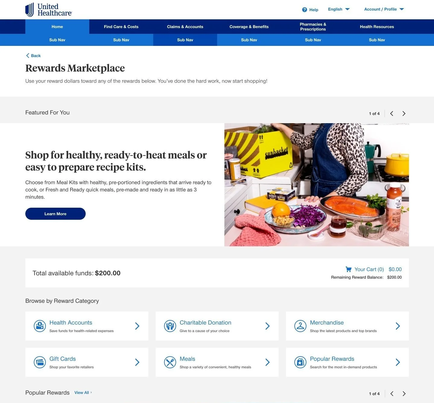I designed a marketplace where users can exchange their earned reward dollars for different products and services, such as gift cards, merchandise, meals, or credit toward medical health accounts.
